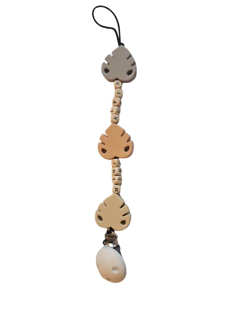 Composition: Clip en silicone sans polluant, 100% sans BPA. Perles en bois et en silicones sans BPA, sans polluant.