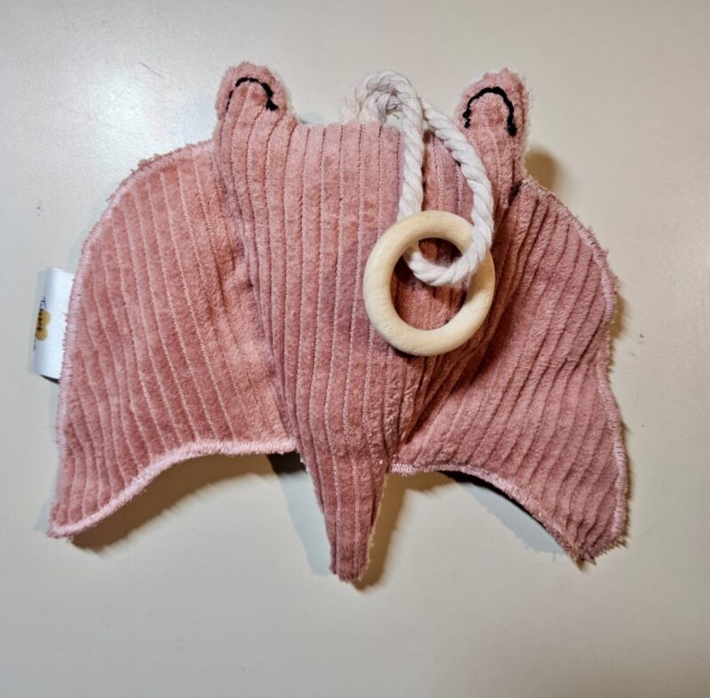 Le ptit doudou peluche accompagnera vos trésors, lors des balades, des dodos, des moments de jeux, de la naissance et au delà. Un anneau en bois de hêtre non traité y est cousu, très pratique pour les dents de bébé.Du papier froissé spécial peluches a été cousu dans les pattes et le museau pour rendre ludique et pour faire découvrir de petits bruits tout doux.