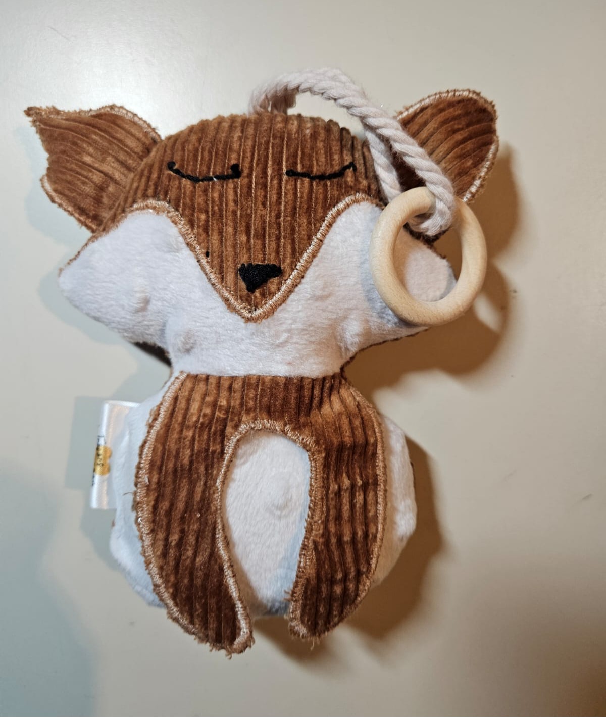 Le ptit doudou peluche accompagnera vos trésors, lors des balades, des dodos, des moments de jeux, de la naissance et au delà. Un anneau en bois de hêtre non traité y est cousu, très pratique pour les dents de bébé. Du papier froissé spécial peluches a été cousu dans les pattes et le museau pour rendre ludique et pour faire découvrir de petits bruits tout doux.
